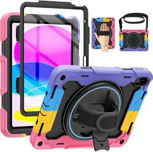 Case for iPad 11 Inch A16 11th Generation 2025 iPad 10th Generation Case 10.9 for Kids with Screen Protector 360 Kickstand Hand Strap Shoulder Strap Heavy Duty Shockproof Drop Protection