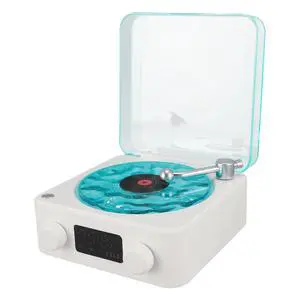 Record Player Speaker, Night Light Time Display 3 in 1 Multifunction Stereo Speaker with for Bedrooms Living Rooms Offices (White)