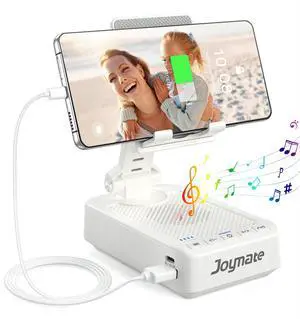 Joymate Gifts for Men Women, Bluetooth Speaker Phone Stand with Charging Function 360 Rotable Adjustable Cell Phone Holder HD Surround Sound for Desk Fits All Phones,Tablet (White)