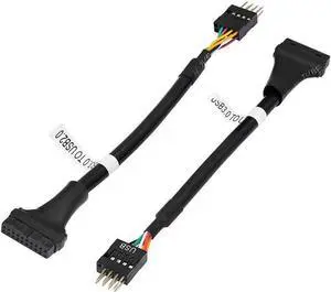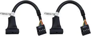Aomoproing USB 3.0 to USB 2.0 Motherboard Adapter Cable, 19 Pin Male to 9 Pin Female, 6 inch/15cm (2-Pack)