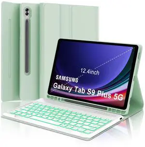 Keyboard Case for Samsung Galaxy Tab S10 Plus, Galaxy S9+ Plus Keyboard 12.4 inch, Magic Keyboard for Samsung S9 FE + Case, 7 Colors Backlit, Magnetic Detachable, Auto Sleep/Wake Up Smart Case (Green)