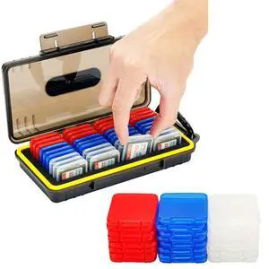 Big SD Card Case + Plastic Card CaseMemory Card Case Holder with 24 PCS Multi-Color Clear SD Card Case