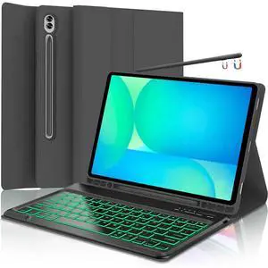 Keyboard Case for Samsung Galaxy Tab S10 FE / S10 Lite 10.9 Inch, S9 FE Smart Backlit Keyboard case with Pen Holder for Tab S9 S8 S7 11", Black