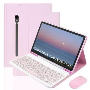 Keyboard Case for Samsung Galaxy Tab S10 Lite / S10 FE / S9 FE / S9 10.9-11 inch, Slim Protective Case, Mouse and Detachable Keyboard (Pink)