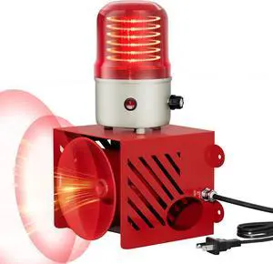 Joinfworld AC110V 120dB Siren Alarm Strobe Light Plug-in Manual Security Alarm Adjustable Volume Outdoor Waterproof Emergency Strobe Warning Light for Warehouse, Construction Site, Crane