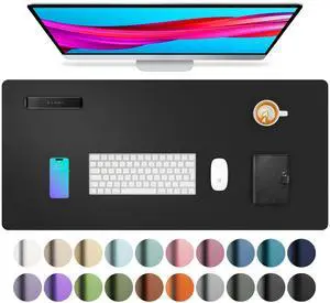 Aothia Non-Slip Waterproof PU Leather Desk Pad Protector for Mouse, Writing Desk, Office, Home, Laptop Blotter, 23.6" x 13.7", Black