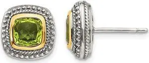 Natural Green Peridot Earrings in Sterling Silver with 14K Gold Accents