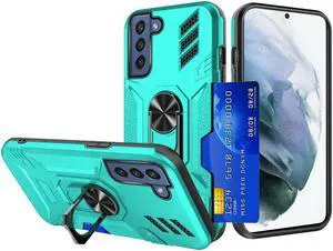 Tough Ring Holder Case with Card Slot for Samsung Galaxy S22 5G - Teal