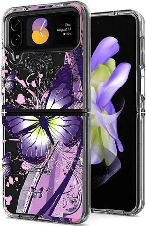 Butterfly Series Dual Layer Transparent Hybrid Case for Samsung Galaxy Z Flip 4 - Purple Pink