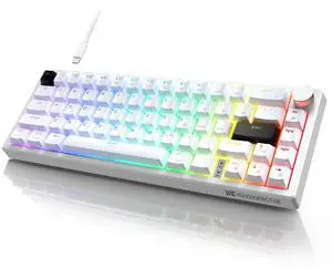 L65 60% Mechanical Keyboard Wireless with Knob, White Gaming Keyboard 4000mAh Battery, Tri Mode USB-C/BT5.0/2.4G Gasket Mounted Key Board RGB Hot Swappable with Anime keycaps-Linear Switch