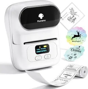 Label Printer - M110 Thermal Label Printer Barcode Label Maker Mini Bluetooth Sticker Printer for Small Business, Home, Office, Logo, Address, Name Tag, Clothing, Organizing White