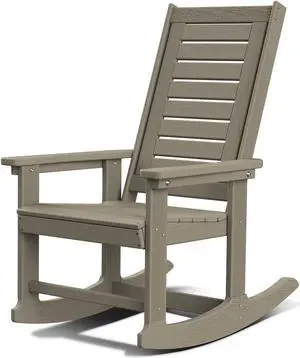 Outdoor Rocking Chair Wood Grain, HDPE All-Weather Porch Rocker, Oversized Plastic Rockers w/Wood Texture & High Back for Outside Indoor Living Room Backyard Balcony Garden Patio