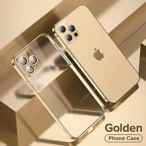 Plating Case For iPhone 13 Pro Max Full Lens Cover Shockproof Soft TPU Cellphone Case Cover For iPhone 13 Pro Max Gold iPhone 13 Pro Max