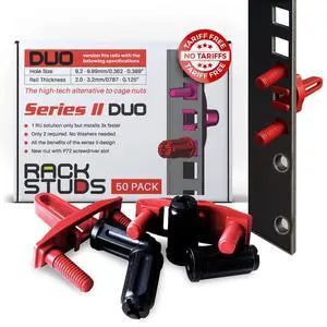 Specifications: 1.75 L x 1.75 W x 1.75 H inches, Rackstuds, RSLDUO-1RUB20-S2, 0.259 kilograms, Grivory, Rack Mount, 20-Pack, DUO20 1RU Series II Rack Mount Solution - Effortless Alternative to Traditional Rack Screws and Cage Nuts & Server Rack Screws Ideal for Server Hardware Setup - 20-Pack, Universal Version