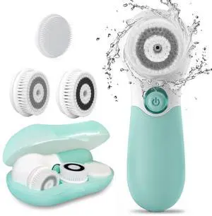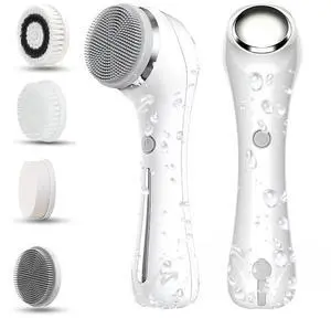 Facial Cleansing Brush, 2 in 1 aterproof IPx7 Facial Spin Scrubber Set with 4 Brush Heads, Rechargeable Exfoliating Face Brush Deep Cleansing, Gently Exfoliate and Remove Blackhead (White)