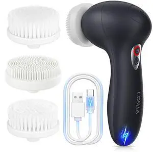 Electric Facial Cleansing Brush  Rechargeable Waterproof Face Scrubber for Women & Men, 2 Brush Heads for Deep Pore Cleansing & Gentle Exfoliation, 3 Speeds, Auto-Timer