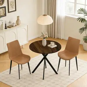 Features: 31.5" Round Dining Table and Chairs Set for 2, Small Dining Table Chairs Set Space-Saving, Small Dinette Sets for 2 for Kitchen Dining Room Apartment(Walnut Table + Beige Chairs), dining table set for 2, Walnut Table Chairs Set for 2