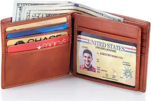 Stealth Mode Leather Bifold Wallet for Men With ID Window and RFID Blocking Light Brown