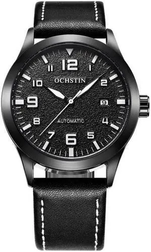 Ochstin 62028 Fashion Fully Automatic Mechanical Watch Waterproof Men  Leisure Mechanical Watch Calendar Leather Watch(Black) (Black)