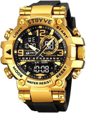 STRYVE S8025 Sports Night Light Electronic Waterproof Watch Multifunctional Student Watch (Black Gold)