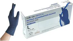 TRICARE MEDICAL Nitrile Exam Gloves, Chemo Drug Tested, 4.3 Mil, Deep Blue, Box of 100 Large