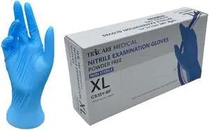 TRICARE MEDICAL Nitrile Exam Gloves, Low Derma, 4.7 Mil, Blue, Box of 100 XL