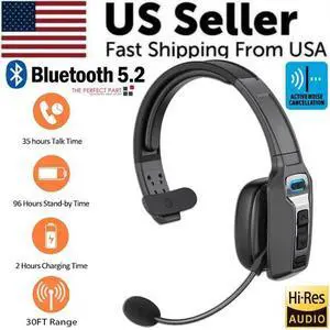 Trucker Bluetooth 5.2 Wireless Headset With Noise Cancelling Mic For Phones PC