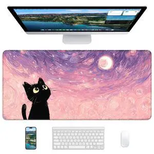 Large Mouse Pad, Desk Mat Office Desk Pad Gaming Mouse Pad with Stitched Edges, 31.5" x 15.7" Mousepad with Non-Slip Waterproof Rubber Base for PC Laptop Desk Home Office Accessories, Black