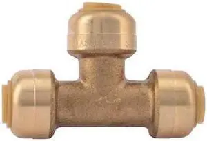 SHARKBITE U358LF Push-Fit Tee Fitting, 1/4 in Tube Size, DZR Brass, Brass