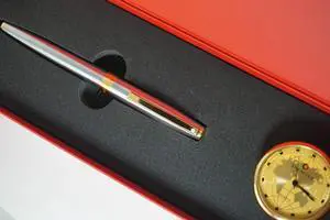 Sheaffer Made in The USA Legacy Heritage with Gold appointments Ball Pen and Sheaffer Gold Desk Watch Corporate Gift Set in Gift Box