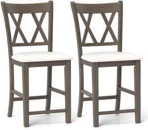 SlickBlue Bar Stools Set of 2 with Cross Back and Faux Leather Upholstered Seat-Gray