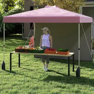 SlickBlue 10 X 10 FT Pop up Canopy Tent with 1 Sidewall and Wheeled Bag-Pink