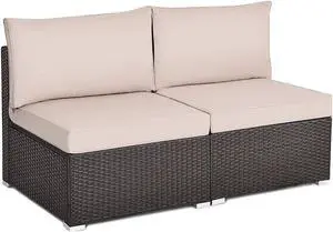 SlickBlue 2 Pieces Patio Rattan Ottoman Seat with Removable Cushions
