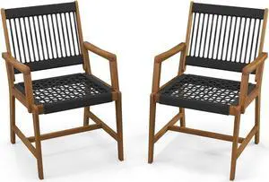 SlickBlue Set of 2 Patio Acacia Wood Dining Chairs with Armrests for Lawn Yard