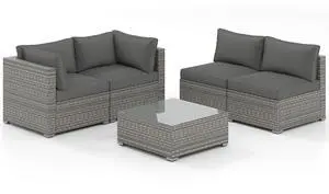 SlickBlue 5-Piece Patio Sofa Set with Cushions and Tempered Glass Coffee Table