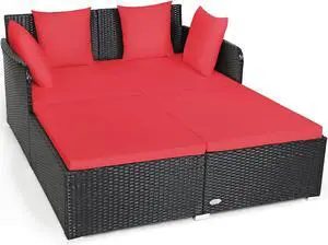 SlickBlue Spacious Outdoor Rattan Daybed with Upholstered Cushions and Pillows