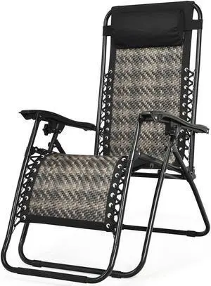 SlickBlue Folding Rattan Zero Gravity Lounge Chair with Removable Head Pillow