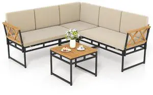 SlickBlue 5 Pieces Patio Furniture Set Acacia Wood Sectional Set with Heavy-Duty Metal Frame