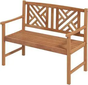 SlickBlue 2-Person Wood Outdoor Bench with Cozy Armrest and Backrest