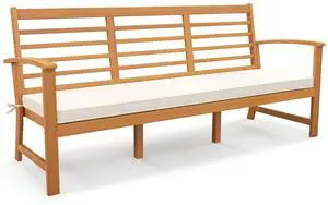 SlickBlue Patio Wood Bench with Seat Cushion and Slatted Seat for Backyard