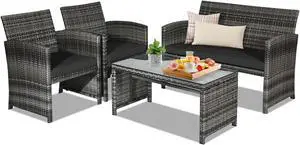 SlickBlue 4 pcs Patio Rattan Wicker Furniture Set