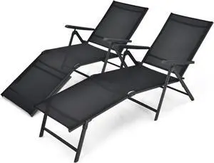 SlickBlue 2 Pieces Foldable Chaise Lounge Chair with 2-Position Footrest