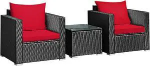 SlickBlue 3 Pieces Patio Wicker Conversation Set with Cushion