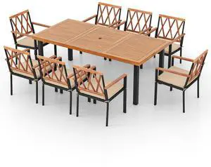 SlickBlue 9 Pieces Patio Dining Set 39.5 Inch Acacia Wood Table with Umbrella Hole and 22.5-Inch Wide Chairs