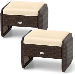 SlickBlue 2 Pieces Outdoor Patio PE Wicker Ottomans with Removable Cushions