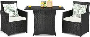 SlickBlue 3 Pieces Rattan Patio Furniture Set with Washable Cushion