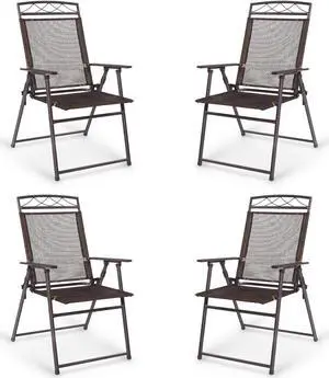 SlickBlue Set of 4 Patio Folding Sling Chairs Steel Camping Deck