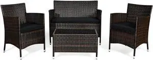 SlickBlue 4 Piece Patio Rattan Conversation Set with Cozy Seat Cushions