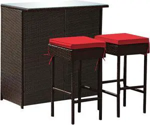 SlickBlue 3 Pieces Patio Rattan Wicker Bar Table Stools Dining Set