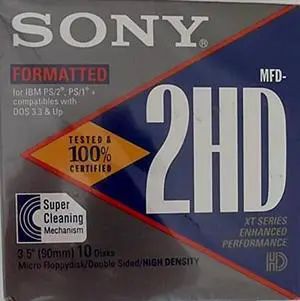 Sony 3.5-inch IBM Formatted Floppy Disks (10-pack, Blue, 1.5 min Recording Capacity)